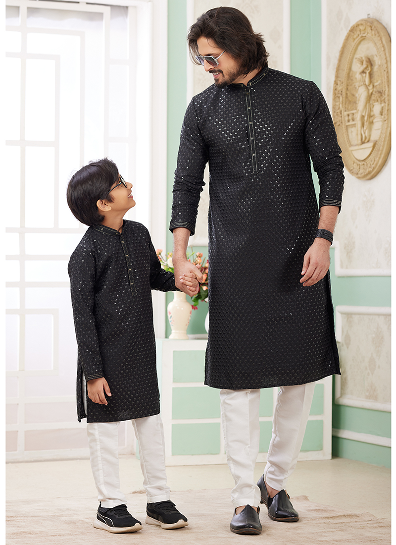 Black Viscose Rayon Father-Son Combo Set – Eid Wear with Sequins Work | Leherafashions NZ