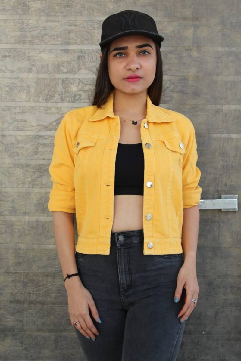 Bright Yellow Cropped Denim Jacket for Women - Welcome to Lehera Fashions