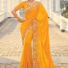Radiant Mustard Pure Crepe Cut Dana Work Wedding Saree