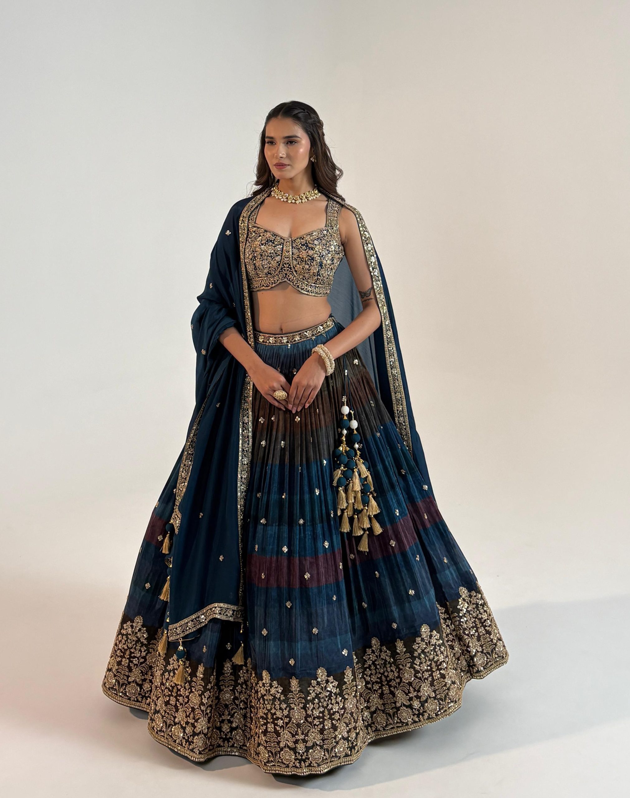 Step into elegance with this premium wedding-ready lehenga set – a stunning ensemble crafted for modern bridesmaids and festive fashionistas.
