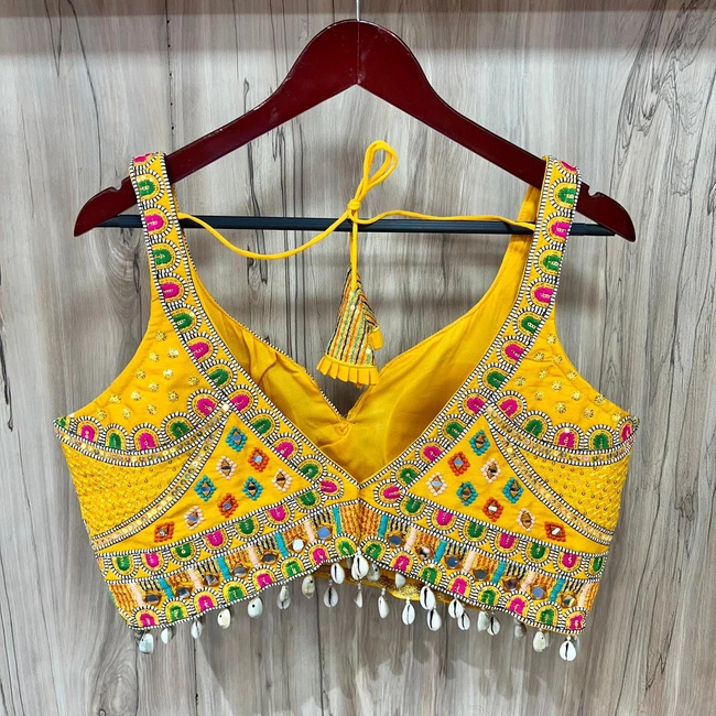 Soft Italian Navratri Fancy Blouse – Embroidered with Kaudi Lace & Mirror Handwork