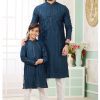 Teal Green Art Silk Father-Son Kurta Set – Festival Wear with Thread Work | Leherafashions NZ - Welcome to Lehera Fashions