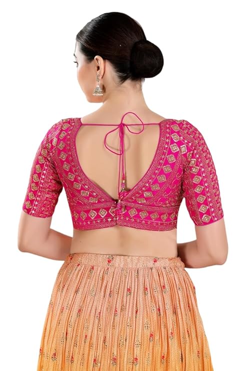 Women’s Silk Padded Self-Design Half Sleeve Readymade Saree Blouse